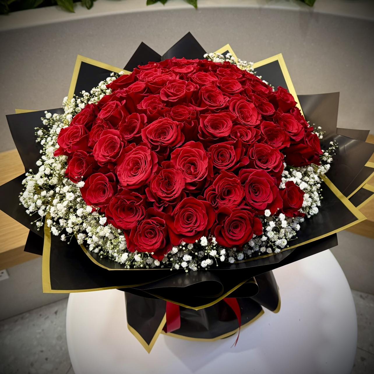 Ruby & White Rose Vase